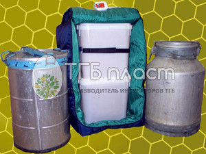 Именно в этом качестве она и прошла успешные испытания, которые производились не только с 40 литровыми алюминиевыми флягами, но и с пластиковыми ёмкостями, поставленными друг на друга. В этом случае датчик температуры (расположенный на пояске, застегивающемся при помощи «липучки») во избежание перегрева верхней ёмкости располагают именно на ней, независимо от материала её изготовления. При использовании относительно высоких емкостей, устанавливаемых в один ряд, поясок с датчиком располагают примерно в средней части металлической емкости, а на пластиковых - ближе к верху. При установке в одной термокамере металлических и пластиковых емкостей, поясок устанавливают на пластиковой. Если к уже прогретой емкости добавляется еще одна, не прогретая, то датчик остается на теплой.